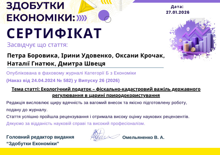 Зима для науково-педагогічних працівників кафедри геодезії, картографії і кадастру факультету лісового і садово-паркового господарства Уманського національного університету – гаряча пора. Саме в цей час реалізуються сміливі проєкти, проводяться нові дослідження та пишуться нові наукові статті. Так нещодавно доценти кафедри геодезії, картографії і кадастру УНУ Петро БОРОВИК, та Ірина УДОВЕНКО, спільно зі студентом бакалаврату спеціальності Геодезія та землеустрій Дмитром ШВЕЦЕМ і колегами з факультетів економіки і підприємництва, а також плодоовочівництва, екології та захисту рослин нашого університету опублікували статтю у престижному фаховому науковому часописі категорії "Б" «Здобутки економіки: перспективи та інновації».