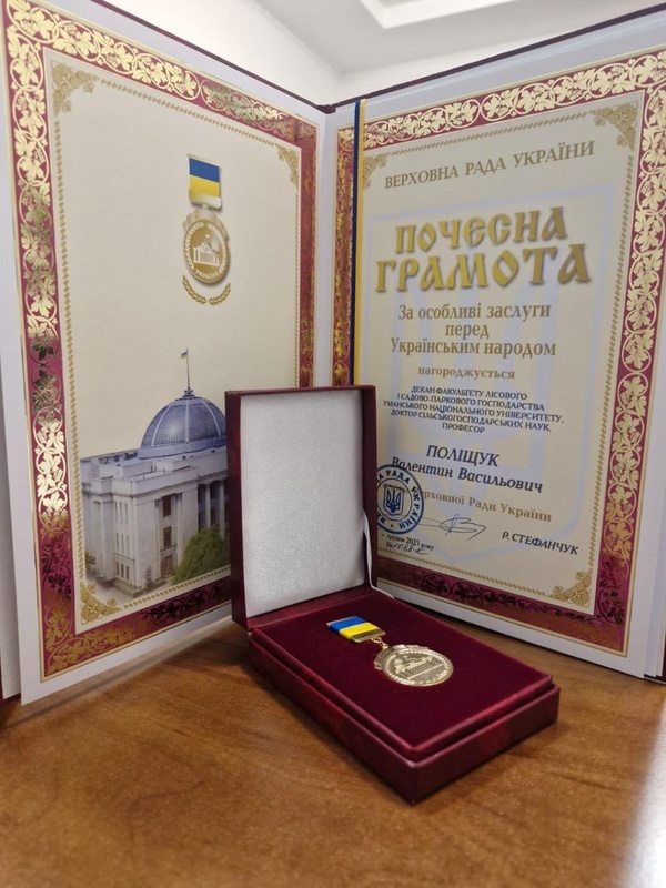 Днями доктора сільськогосподарських наук, професора, декана факультету лісового і садово-паркового господарства Уманського національного університету, члена-кореспондента НААН України, заслуженого працівника сільського господарства України Валентина ПОЛІЩУКА було нагороджено Почесною грамотою Верховної Ради України «За особливі заслуги перед Українським народом».