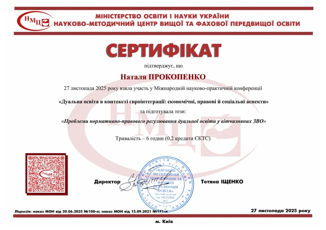 Участь у Міжнародній науково-практичній конференції «Дуальна освіта в контексті євроінтеграції: економічні, правові й соціальні аспекти»