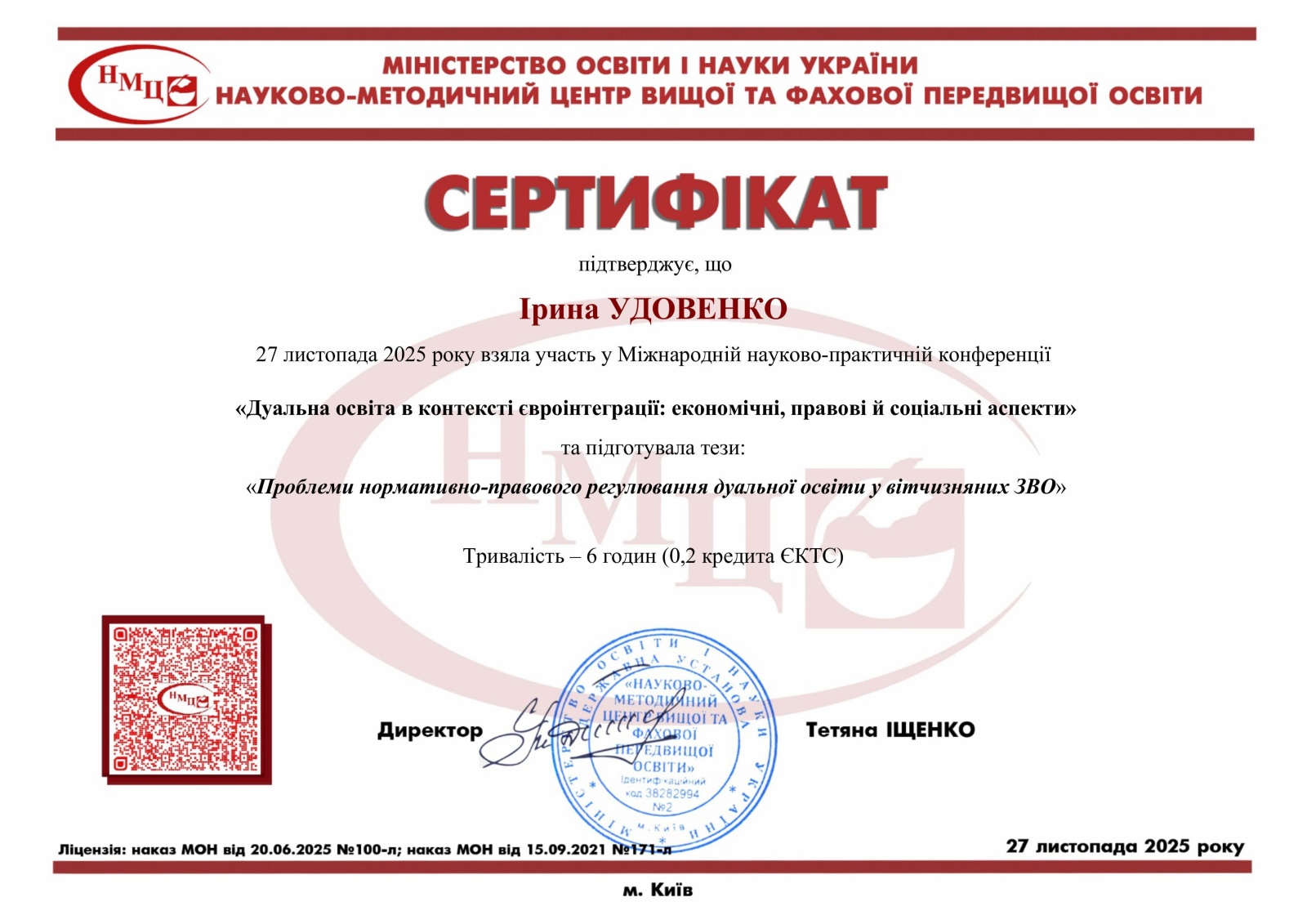Проблеми дуальної освіти в Україні – один із фокусів наукових пошуків науково-педагогічних працівників кафедри геодезії, картографії і кадастру факультету лісового і садово-паркового господарства Уманського національного університету. Саме тому доценти Ірина УДОВЕНКО, Михайло ШЕМЯКІН, Петро БОРОВИК та викладач Наталя ПРОКОПЕНКО взяли участь у Міжнародній науково-практичній конференції «Дуальна освіта в контексті євроінтеграції: економічні, правові й соціальні аспекти», нещодавно проведеній на базі державної установи «Науково-методичний центр вищої та фахової передвищої освіти» Міністерства освіти і науки України.